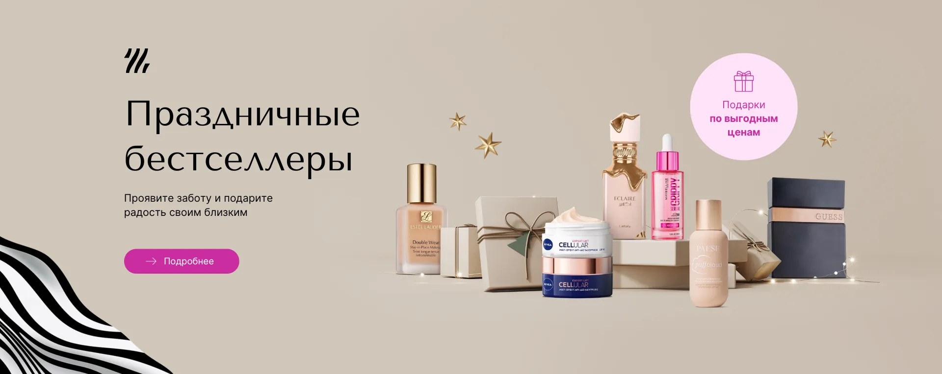 Специально для своих клиентов магазин постоянно расширяет ассортимент, добавляет новые товары и категории. Среди них доступны такие категории: Макияж, Уход, Ногти, Аксессуары, Духи, Дом, Мужчины, Подарки, Скидки и Новинка.