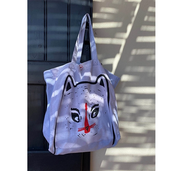 YOPE БОЛЬШАЯ СИНЯЯ ТКАНЕВАЯ СУМКА С КОТОМ