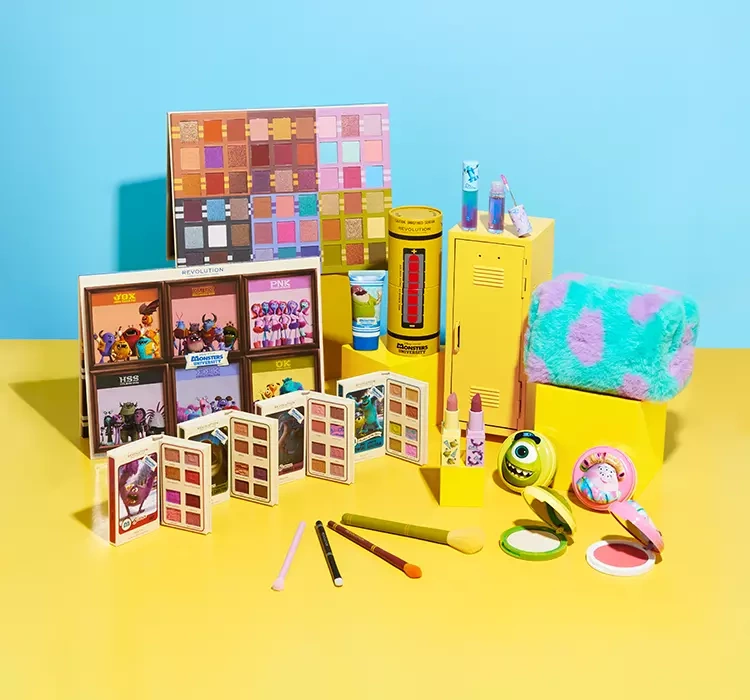 Makeup Revolution x Monsters University - это лимитированная коллекция косметики, на упаковке которой Вы найдете известных персонажей фильма Pixar – "Университет Монстров" и "Корпорация Монстров". Коллекция создана для ученников и студентов, а также любителей культового бренда. Создайте непревзойденный макияж вместе с продуктами Disney Pixar Monsters University & Revolution!