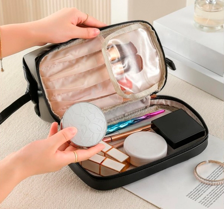 Высококачественная косметичка изготовлена из мягкого, скользкого материала, который не только эффективно защищает все продукты от повреждений, но также является приятным и нежным на ощупь. Кроме того, она имеет необыкновенно элегантный дизайн, который будет фантастически смотреться на любом туалетном столике или в ванной комнате.