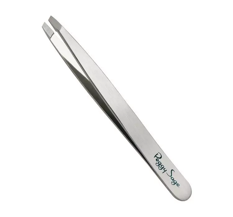 PEGGY SAGE СКОШЕННЫЙ ПИНЦЕТ ДЛЯ БРОВЕЙ СЕРЕБРЯНЫЙ