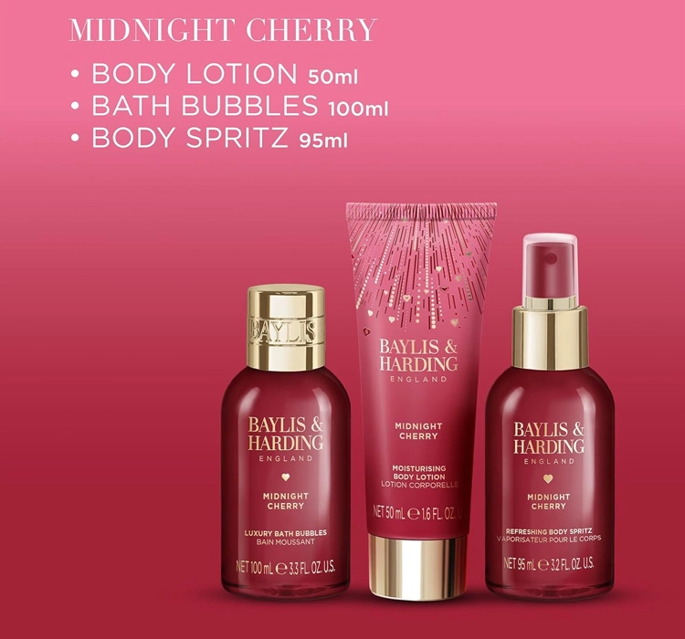 Baylis & Harding Midnight Cherry подарочный набор косметики: пена для ванны 100 мл + спрей для тела 95 мл + бальзам для тела 50 мл