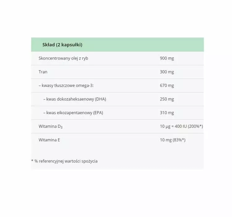 Рыбий жир имеет много оздоровительных свойств. Это богатый источник жирных кислот Омега-3, особенно ЭПА-ейкозапентаеновой кислоты и ДГК-докозагексаеновой кислоты) и витамина D3. Омега-3 кислоты важны для нормального функционирования нашего организма. ДГК-кислота является важным строительным элементом мозга и способствует его нормальному функционированию. Также влияет на правильную работу органа зрения. ЭПА-кислота помогает заботиться о сердце. Витамин D3 важен для крепких костей и зубов. Он также поддерживает иммунитет.