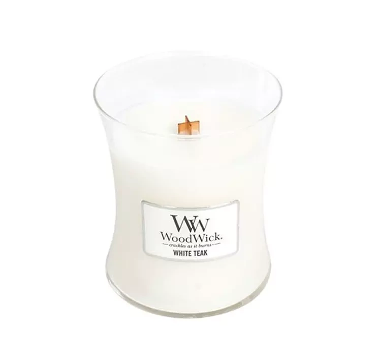 WOODWICK MEDIUM JAR CANDLE АРОМАТИЧЕСКАЯ СВЕЧА WHITE TEAK 275Г