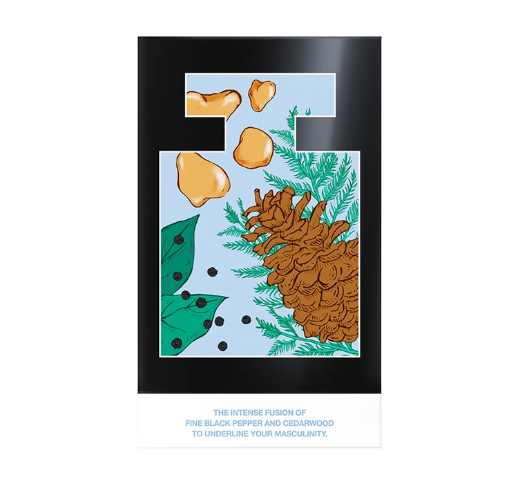 Начало аромата приносит дыхание свежести с водными нотами и мандарином, приправленными выразительностью черного перца. В сердце аккорд водяной лилии сочетается с глубоким запахом кедра. Композицию дополняет действительно мужская база с пачули, кремового сандала и теплого янтаря.