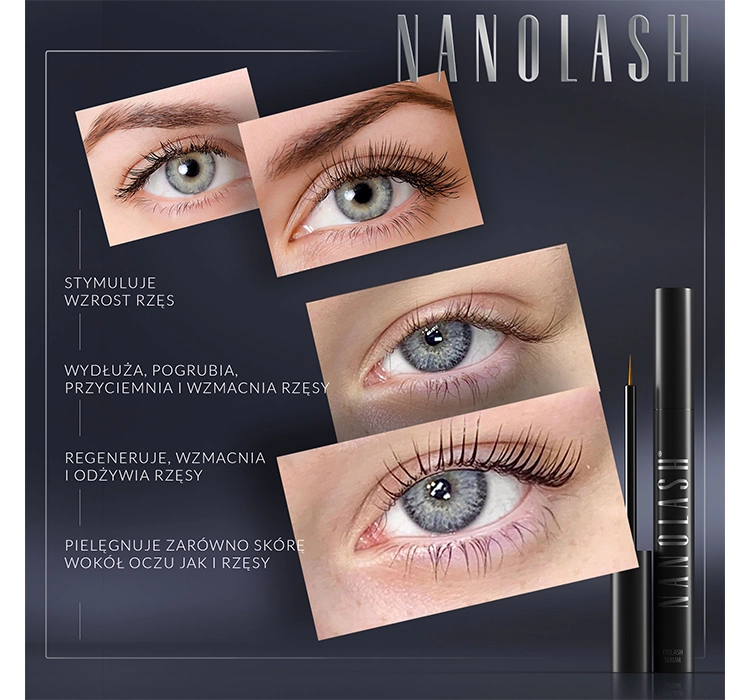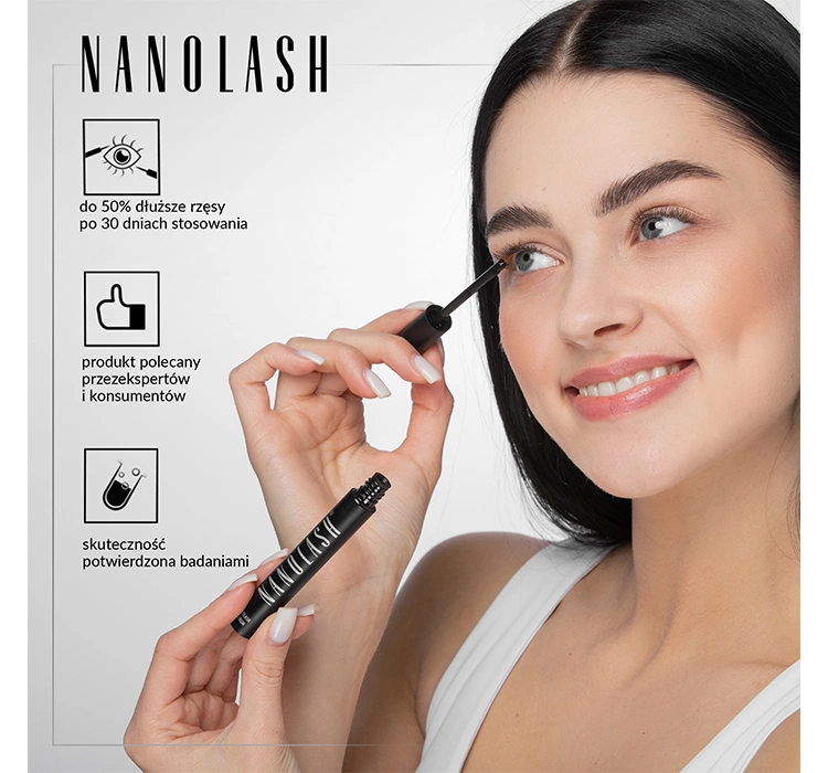 Nanolash Eyelash Serum получила признание не только специалистов, но также клиенток, благодаря необычно комплексному и максимально эффективному действию. Кондиционер ухаживает за ресницами, увлажняет и восстанавливает их уже с первого применения. С каждым последующим нанесением ресницы становятся длиннее, гуще, темнее, более эластичными и сияющими. Кондиционер также подчеркивает форму глаз и визуально утолщает линию ресниц.