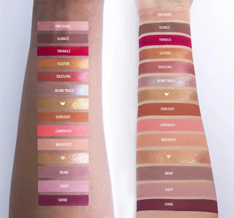 Дополнительным преимуществом палитры теней Glow And Gleam является ее дизайн – упаковка украшена красивой графикой золотой бабочки. Внутри продукта находятся квадратные молдинги с тенями и пигментами, а также удобное зеркало. Это веганский продукт.