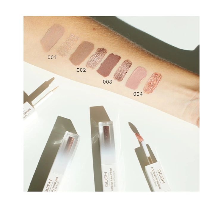 Матовые тени Gosh Eyeconic Shadows очень устойчивы и помогают контролировать излишки кожного сала на веках, благодаря чему макияж держится много часов. Металлические тени отличаются быстрым нанесением и стойкостью к размазыванию. Они создают гламурный эффект, красиво подчеркивающий внешность. Обе формулы идеально сочетаются друг с другом.