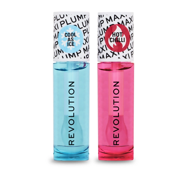 Набор косметики Revolution Maxi Plump Cool As Ice и Hot As Chilli Lip Set содержит два блеска для губ, создающих разнообразные ощущения – охлаждающий и согревающий эффект. Однако эти продукты имеют одну общую черту. Каждый из них оснащен удобным аппликатором с мягкой толстой концовкой, благодаря которой блеск для губ легко и равномерно наносится на губы.