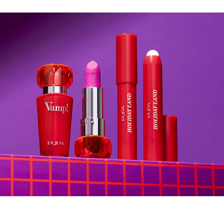 Праздничная коллекция Pupa Holiday Land создана под вдохновением 1980-х годов и господствовавших в то время тенденций. Для этого периода были характерны яркие и насыщенные цвета, поэтому Вы не удивитесь, что классическая красная упаковка украшает клетчатый узор в оттенках фуксии, который создает эксцентричный и насыщенный контраст. Кроме того, щекотливый акцент золота повторяется в деталях декоративных коробок, придавая им чувственную элегантность