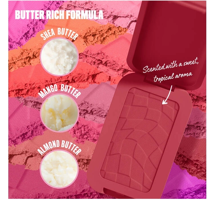 Вы можете регулировать интенсивность румян Buttermelt на своей коже, нанеся большее количество продукта. Чтобы получить уникальный эффект, соедините два Ваших любимых оттенка Buttermelt Blush и примените их к своему образу или настроению. Компактные румяна Buttermelt идеально сочетаются с бронзером Buttermelt Bronzer. Компактная форма идеально подходит для путешествий, поскольку упаковка является маленькой и многофункциональной. Упаковка торговой friendly.