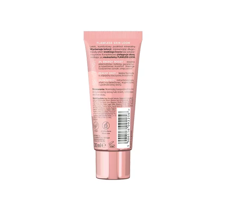 AA YOU.mmy Skin Peach Flawless Foundation – это фантастическая минеральная основа, которая позволит Вам создать феноменальный макияж для любого случая. Инновационная формула основана на идеальном сочетании активных ингредиентов, гарантирующих как безупречный вид, так и комплексный уход. 2% Energy Boost - это комплекс электролитов и кофеина, который глубоко увлажняет кожу и обеспечивает комфорт при использовании. Glow Effect мгновенно осветляет и выравнивает цвет, а Peachy Shot придает коже прекрасный аромат сочного персика.