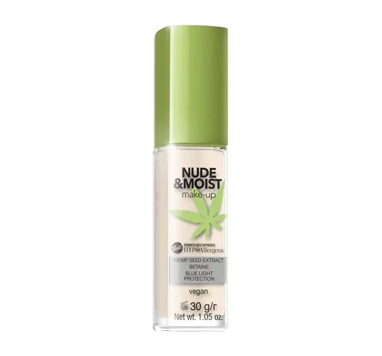 Bell Hypoallergenic Nude&Moist - это легкое, кремовое тональное средство, которое позволяет создавать покрытия с различной интенсивностью. Флюид выравнивает цвет кожи, скрывает несовершенства, а также признаки усталости. Формула продукта обогащена витаминами, минералами и антиоксидантами, а также экстрактом семян конопли, которые интенсивно увлажняют кожу, улучшая ее эластичность и общее функционирование. Кроме этого, средство защищает от вредного воздействия голубого света, которое излучают телефоны, компьютеры или телевизоры. Бетаин, что содержится в составе продукта, увлажняет, делая кожу шелковисто гладкой.