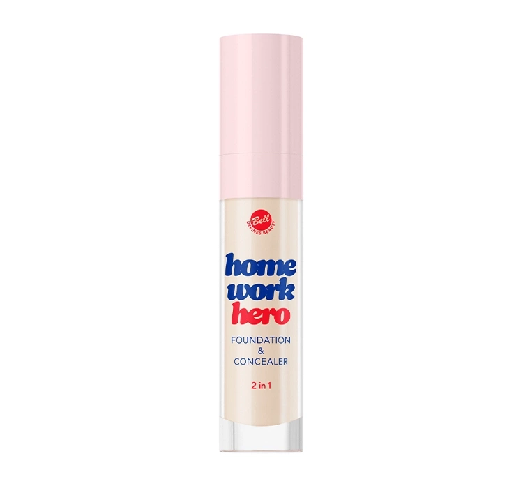 Формула тонального средства 2в1 Bell Homework Hero разработана так, чтобы сочетать лёгкость и надёжное покрытие. Нежная текстура обеспечивает естественный вид без утяжеления кожи, при этом отлично маскирует покраснения, пигментные пятна и тёмные круги под глазами. Поэтому средство идеально подходит как для быстрого выравнивания тона лица, так и для точечного применения в качестве консилера.