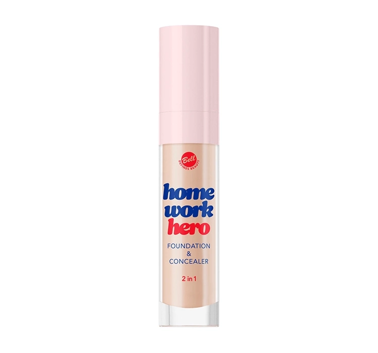 Формула тонального средства 2в1 Bell Homework Hero разработана так, чтобы сочетать лёгкость и надёжное покрытие. Нежная текстура обеспечивает естественный вид без утяжеления кожи, при этом отлично маскирует покраснения, пигментные пятна и тёмные круги под глазами. Поэтому средство идеально подходит как для быстрого выравнивания тона лица, так и для точечного применения в качестве консилера.
