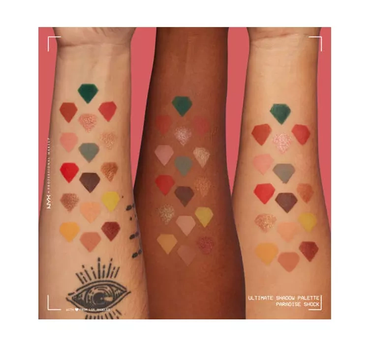 Палитра теней для век NYX Ultimate Paradise Shock - это яркое предложение, которое перенесет Вас в тропический климат. В палитре Вы найдете бежевый и коричневый цвета, а между ними смелые акценты с неоново-красным и морским зеленым. Это палитра, которая придаст свежести Вашему макияжу. После ознакомления с палитрой, Вы точно захотите создать особый макияж глаз. Палитра теней отлично подходит для создания яркого образа, придания цветного акцента или линии. Тени для век вдохновлены цветами тропиков, а с их помощью Вы создадите уникальный оригинальный макияж.