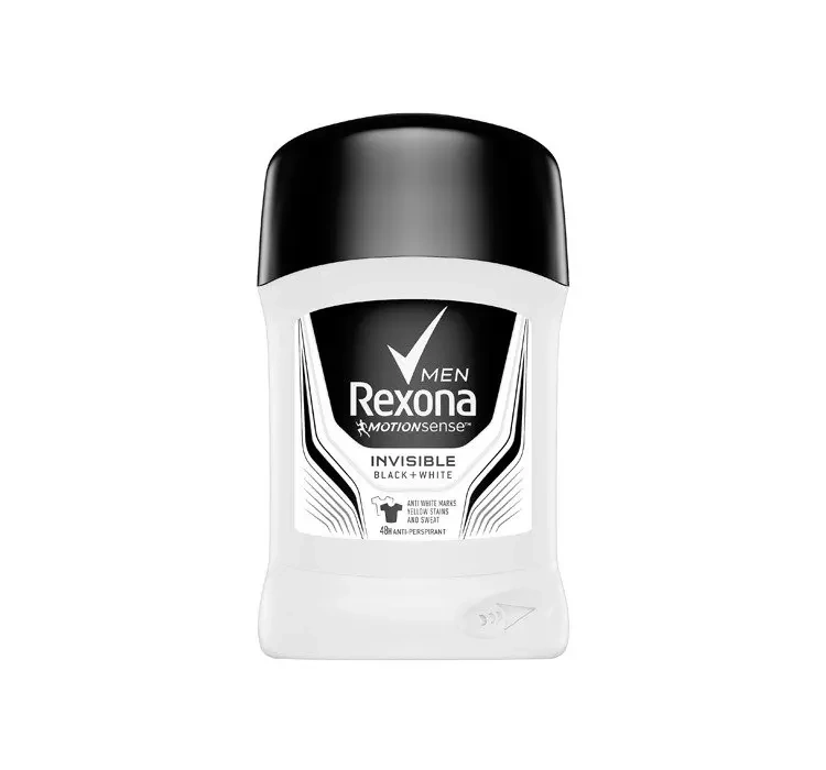 Антиперспирант-стик Rexona Men Invisible Black + White не только обеспечит тебе эффективную защиту от пота и неприятного запаха до 48 часов, а также благодаря специальной технологии позаботится о твоем одежде, не оставив на ней никаких неэстетичных желтых пятен и белых следов.