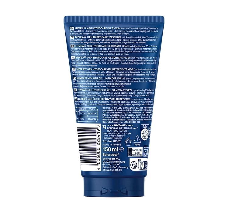 Благодаря лёгкой консистенции и лёгкому смыванию гель не оставляет жирной плёнки, обеспечивая полный комфорт использования каждый день. Регулярное применение NIVEA MEN Hydrocare улучшает состояние кожи, возвращая ей здоровый вид и естественное сияние. Это отличный выбор для мужчин, которые ценят простоту, эффективность и ощущение свежести — независимо от интенсивности дня. Положитесь на силу алоэ и сделайте кожу чистой, увлажнённой и полной энергии на весь день.