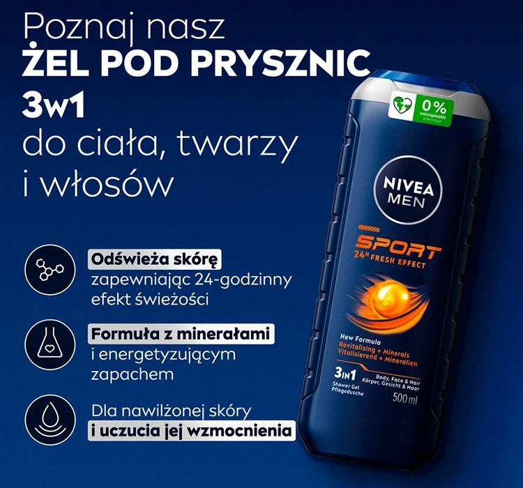 NIVEA MEN SPORT ГЕЛЬ ДЛЯ МЫТЬЯ ТЕЛА, ЛИЦА И ВОЛОС 500МЛ