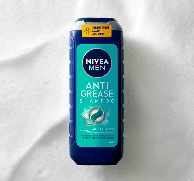 Шампунь для мужчин NIVEA MEN Anti Grease эффективно очищает волосы и кожу головы от всех загрязнений. Кроме того, он удаляет излишки себума, обеспечивая максимальное ощущение свежести, которое сохраняется до 24 часов!
