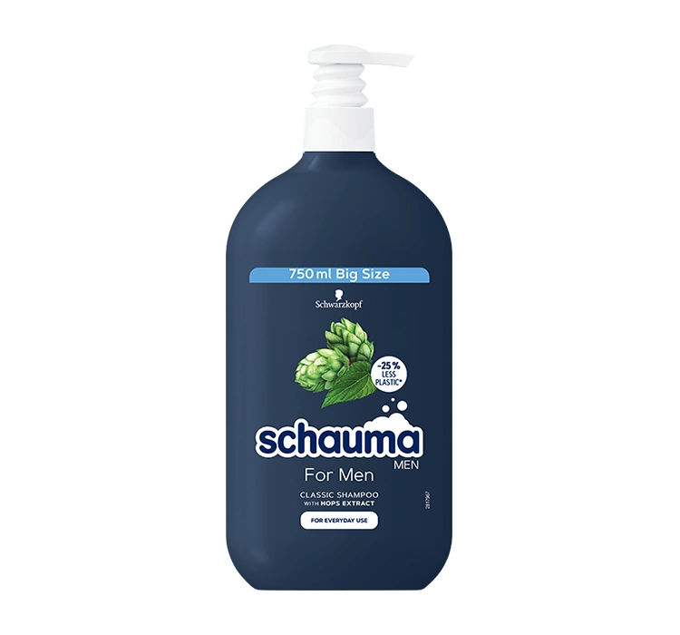 Формула мужского очищающего шампуня Schauma MEN обогащена очень эффективным натуральным активным ингредиентом – экстрактом хмеля. Хмель укрепляет волосяные луковицы, делая волосы здоровыми, крепкими и блестящими. Кроме того, он поддерживает борьбу с лупой.