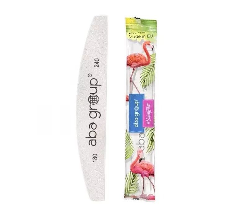 Одноразовая пилочка-полумесяц для ногтей Aba Group 180/240, предназначена для маникюра и труднодоступных мест, а также для профессионального использования.