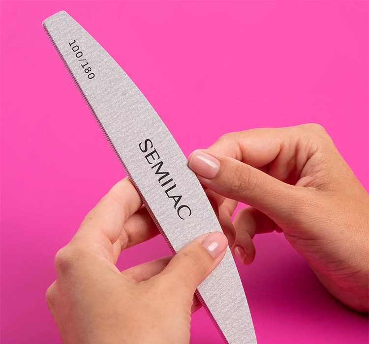Пилочка Semilac имеет также две градации. Одна сторона мелкозернистая с градацией 180, а вторая среднезернистая с градацией 100. Благодаря этому можно сократить натуральные и наращенные ногти и без проблем устранить гелевую или акриловую массу.