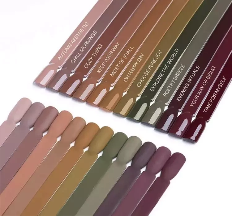 NeoNail Love Your Nature - это осенняя коллекция гель-лаков, полная оттенков красного, коричневого, бежевого и зеленого. Она содержит 12 цветов, навеянных осенней аурой, идеально вписывающихся в актуальные тренды.
