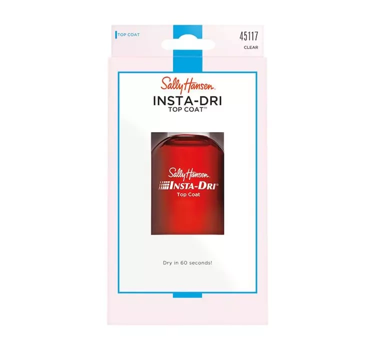 Sally Hansen Insta-Dri Top Coat - это верхнее покрытие, которое высушивает лак для ногтей за 30 секунд и образует твердый, прочный слой на его поверхности.