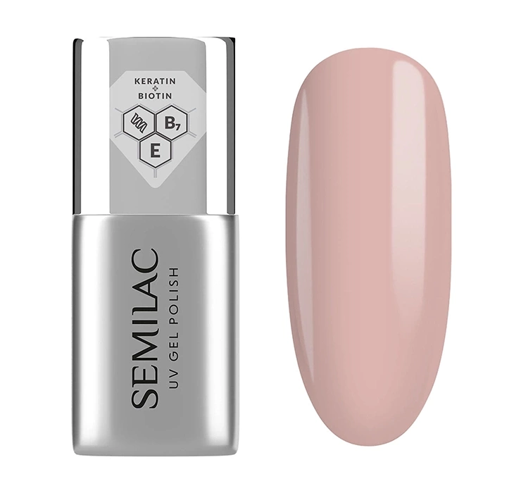 Формула базы Semilac обогащенп такими активными компонентами, как: биотин, кератин, витамин Е и нейлоновые волокна. Они помогают заполнить ногтевую пластину и защитить ее от ломкости, раздвоения и механических повреждений. База также позволяет нарастить ногти до 1 см.