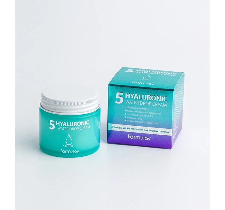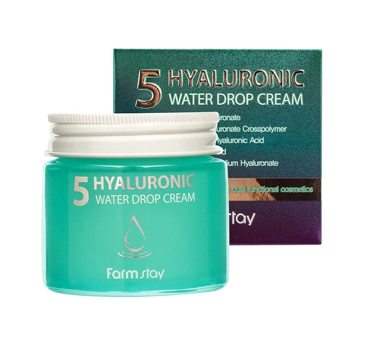 Farmstay Hyaluronic 5 Water Drop Cream – легкий корейский крем для лица, прекрасно увлажняющий кожу и создающий эффективный защитный барьер от потери влаги, оставляя лицо сияющим. Благодаря содержанию пяти видов гиалуроновой кислоты крем глубоко проникает в кожу, увлажняя ее изнутри, и при этом создает защитный слой на поверхности, защищая от вредных внешних факторов.