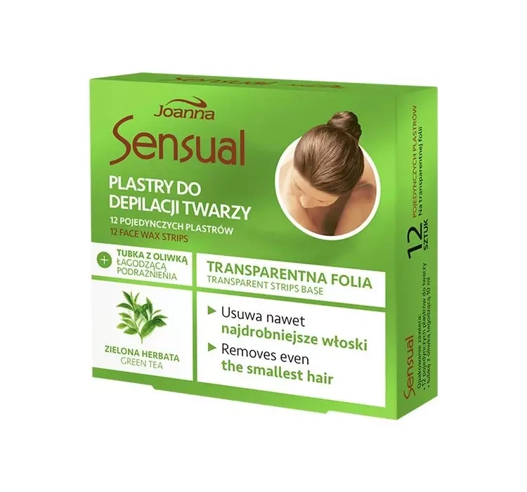 JOANNA SENSUAL ПОЛОСКИ ДЛЯ ДЕПИЛЯЦИИ ЛИЦА С ЭКСТРАКТОМ ЗЕЛЕНОГО ЧАЯ 12 ШТУК