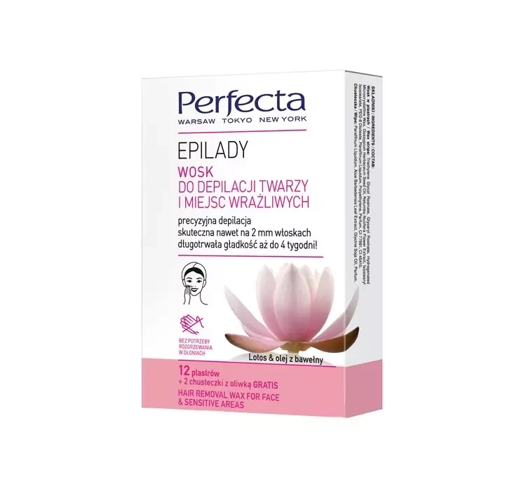 Точная депиляция лица и чувствительных мест (например, подмышек, зоны бикини) с помощью восковых полосок в 4 простых шагах. Эластичная структура полосок и исключительная новая формула, которая позволяет легко разделять полоски без необходимости натирания и разогревания в ладонях. Обеспечивает тщательную депиляцию небольших и деликатных участков кожи. Специальная формула предназначена для чувствительных зон, чтобы минимизировать риск раздражения. Полоски, обогащенные цветом лотоса, гарантируют долговременный эффект гладкой кожи, одновременно ухаживая за ней. Полоски также эффективны для коротких волосков, длиной даже 2 мм. Восковая депиляция ослабляет волосы, благодаря чему они отрастают медленнее. После процедуры кожа остается бархатно гладкой в течение 4 недель. Упаковка дополнена салфетками для применения после депиляции; они пропитаны маслом алоэ, устраняют остатки воска и успокаивают раздражение.