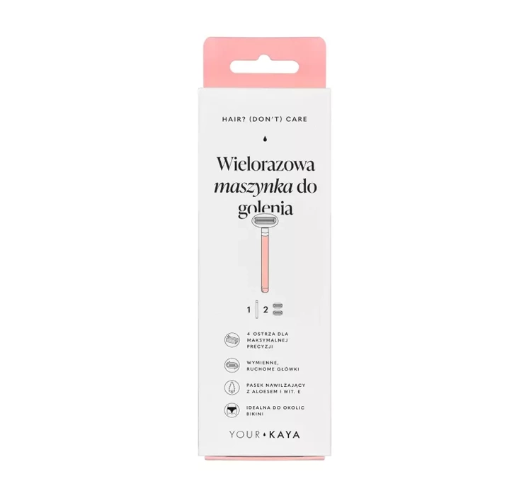 Многоразовый бритвенный станок Your KAYA оснащен увлажняющей полоской с алоэ и витамином Е, который защищает кожу от раздражений и механических повреждений, а также обеспечивает правильное скольжение бритвы. Формула полоски не расклеивается после контакта с водой. Округлая подвижная головка бритвы идеально подстраивается под форму тела, что в свою очередь позволяет легко добраться даже до труднодоступных мест.