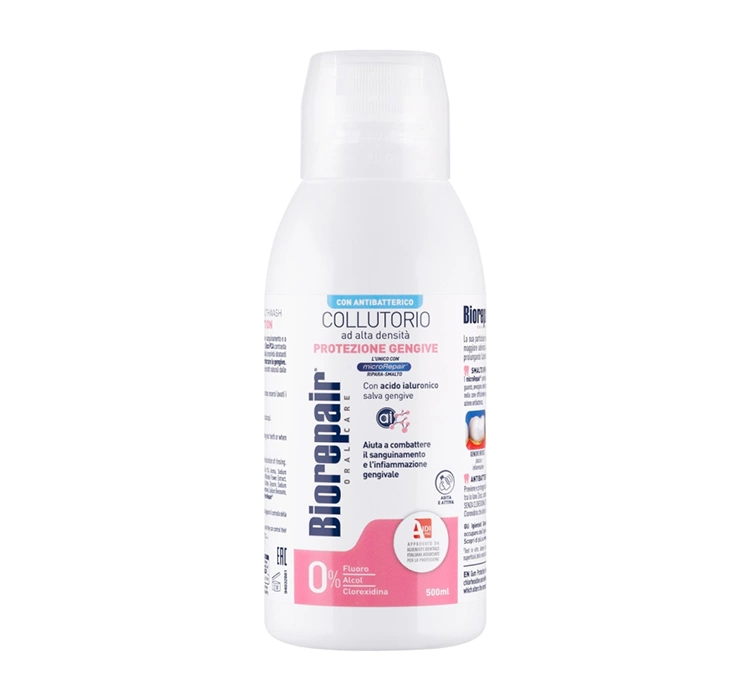 Ополаскиватель для полости рта Biorepair Gum Protection Mouth Wash High Density — идеальный выбор для людей с чувствительными деснами. Его уникальная формула не только укрепляет и защищает десну, но и способствует регенерации эмали и предотвращает образование зубного налета.