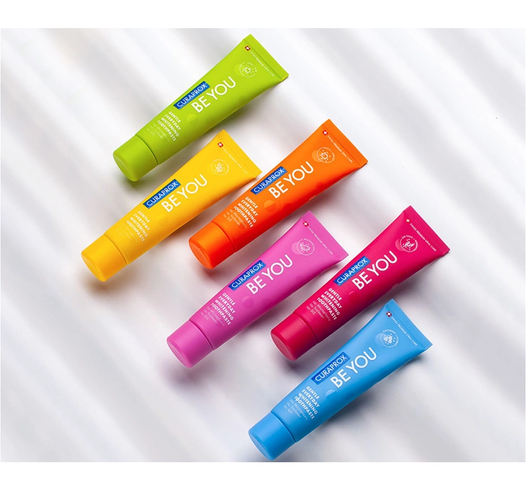 ШвейцарияCuraprox Be You – это больше, чем просто зубная паста – это уникальная комбинация ингредиентов, которые комплексно заботятся о здоровье ротовой полости. Этот продукт характеризуется в первую очередь содержанием фтора, который необходим для поддержания крепких и здоровых зубов. Но это еще не все - гидроксиапатит и глюкозооксидаза работают вместе, чтобы обеспечить ферментативное отбеливание зубов, которое является нежным и не повреждает эмаль.