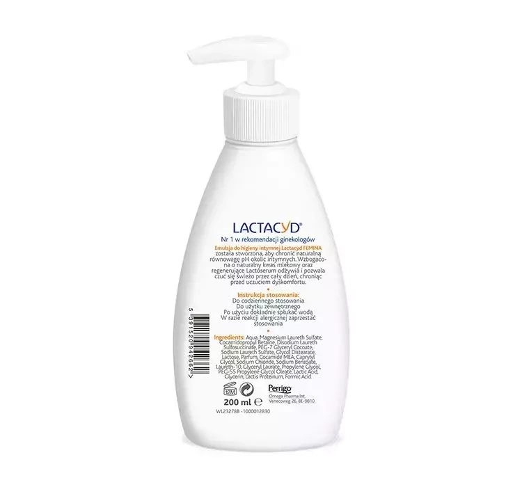 LACTACYD FEMINA ГЕЛЬ ДЛЯ ЕЖЕДНЕВНОЙ ИНТИМНОЙ ГИГИЕНЫ С ДОЗАТОРОМ 200МЛ