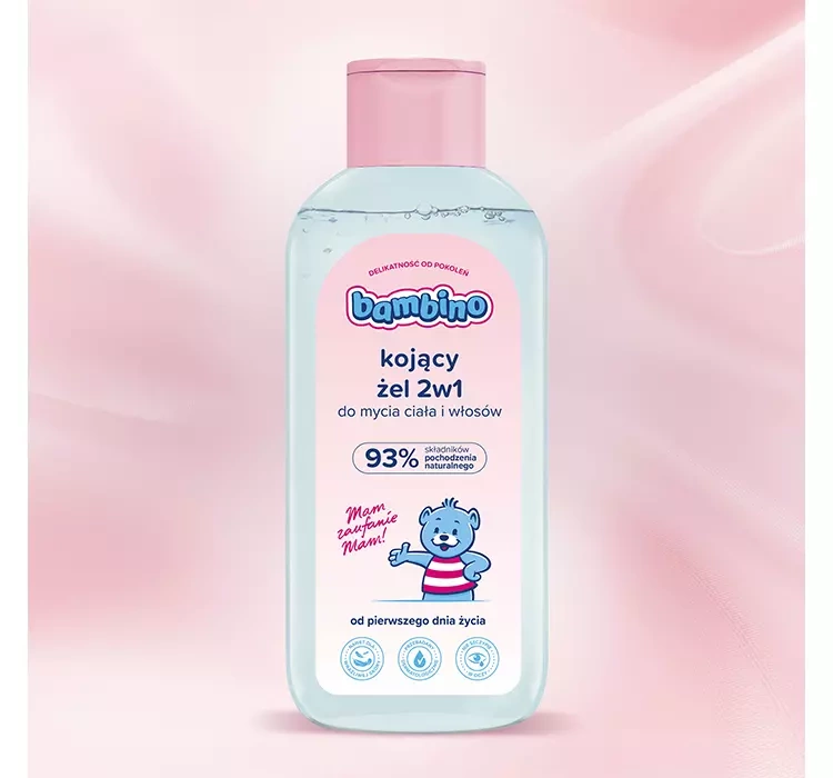 Успокаивающий гель Bambino не только заметно улучшает состояние детской кожи, но также значительно улучшает ее вид. Он образует очень нежную пену на коже с сильными увлажняющими свойствами. Продукт не раздражает глаза, что является очень важным преимуществом моющих средств для самых маленьких детей.