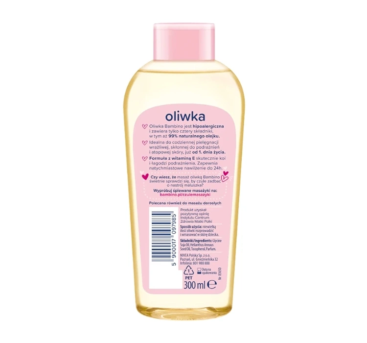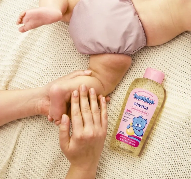 Успокаивает раздражение и смазывает кожу. Оливковое масло Bambino деликатно заботится об увлажнении кожи ребенка.