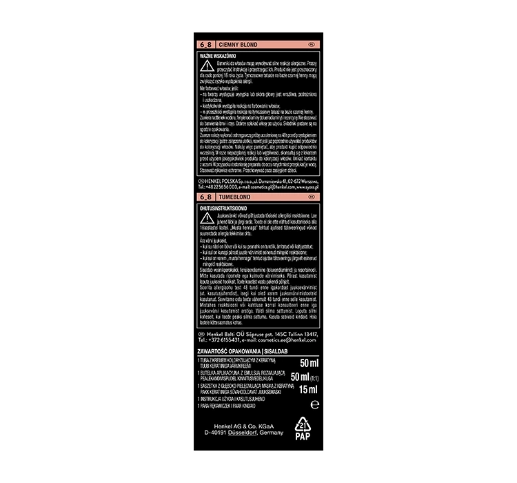 Упаковка содержит:Крем-краску 50 мл Молочко 50 мл Кондиционер SalonPlex 15 мл