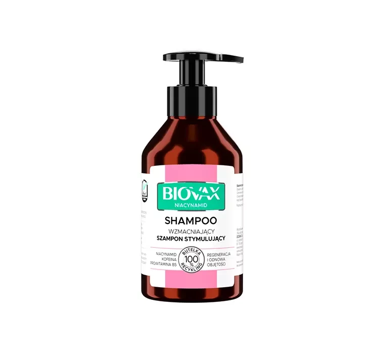 В формуле укрепляющего шампуня для стимуляции волос Вы найдете полезные активные ингредиенты - ниацинамид, кофеин, бетаин и пантенол. Шампунь Biovax Niacinamid имеет веганскую рецептуру – не содержит ингредиентов животного происхождения, поэтому будет безопасным выбором для веганов и вегетарианцев.