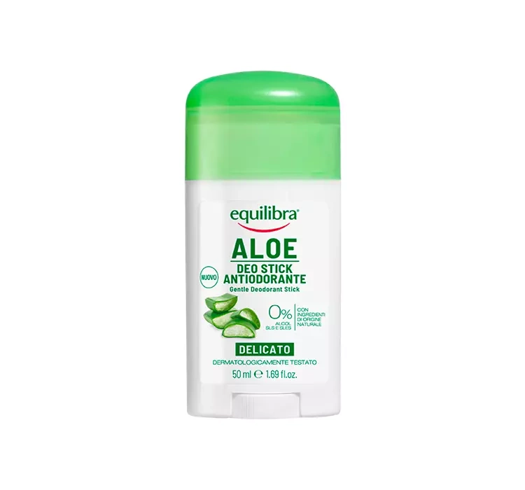 Equilibra Aloe Protezione Naturale Deo-Stick - это дезодорант-стик с высокой концентрацией алоэ. Алоэ - это один из основных компонентов, применяемых в косметике Equilibra. Он хорошо проникает вглубь кожи, а его полезные свойства имеют широкий спектр действия. Этот компонент используют на кухне, в медицине и косметологии. Его важнейшие свойства - глубокое увлажнение, синтез коллагена, который помогает поддерживать молодой вид кожи, разглаживание, а также комплексная защита кожи. Одним словом, алоэ вера прекрасно поддерживает функционирование не только кожи, но также всего организма. Антиперспирант содержит "умную" молекулу натурального происхождения, которая активизируется при выделении пота, предотвращая образование неприятных запахов. Продукт идеально подходит для ежедневного применения, чтобы поддерживать надлежащий уход за телом. Он не содержит спирта и имеет деликатный, успокаивающий состав.