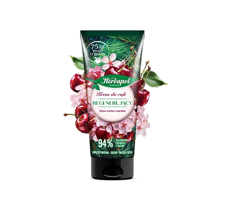 ПольшаВосстанавливающий крем для рук Herbapol Polana особенно рекомендован для ухода за сухой, шершавой и тусклой кожей рук. Его богатая формула обогащена эффективными фитонутриентами - экстрактами горькой вишни и хвои и маслом ши. Именно благодаря этим ингредиентам крем обеспечивает большую эффективность. Восстанавливает здоровый цвет, защищает кожу от высыхания, поддерживает процессы регенерации и делает ее мягкой.