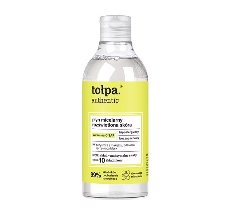 Осветляющий мицеллярный флюид Tołpa Authentic - это не только косметическое средство для очищения, но и отличный способ для поддержания природного сияния кожи каждый день. Регулярное использование позволяет наслаждаться кожей, которая выглядит здоровой и сияющей. Эта мицеллярная вода скоро станет незаменимым элементом вашего ухода, предлагая эффективность и нежность кожи, которые вы заметите и почувствуете уже после первого применения.
