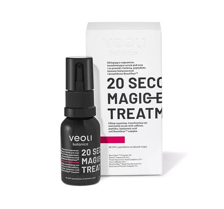 Veoli Botanica 20 Seconds Magic Eye Treatment - это лифтингирующая сыворотка под глаза и на веки с кофеином, пептидами, гиалуроновой кислотой и комплексом Beautifeye ™.