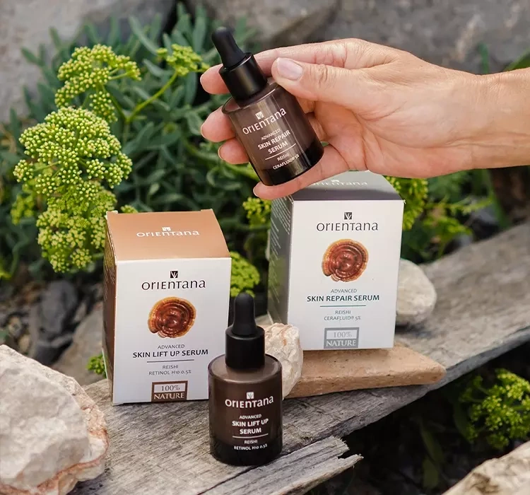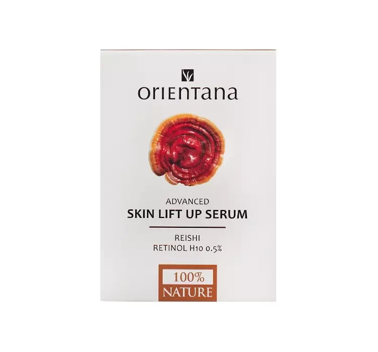 Сыворотка для лица Orientana Skin Lift Up - это уникальная косметика, обогащенная грибом рейши и ретинолом H10. Гриб Рейши называют божественным грибом бессмертия, это ценный источник витаминов и минералов, положительно влияющих на внешний вид и состояние кожи. Этот ингредиент уже много лет известен своими питательными и омолаживающими свойствами. Обладает антивозрастными, увлажняющими и антиоксидантными свойствами. Ретинол Н10 улучшает увлажнение кожи, регенерирует и выравнивает тон кожи. Эта форма ретинола лишена раздражающих свойств большинства ретиноидов. В состав сыворотки Orientana Skin Lift Up также входит энергичный коэнзим Q10, укрепляющий бета-глюкан, регулирующий бакухиол, эластичный сквалан и увлажняющее масло камелии kissi. Эта комбинация активных ингредиентов гарантирует правильно восстановленную, бархатно-мягкую на ощупь, упругую и молодую кожу.