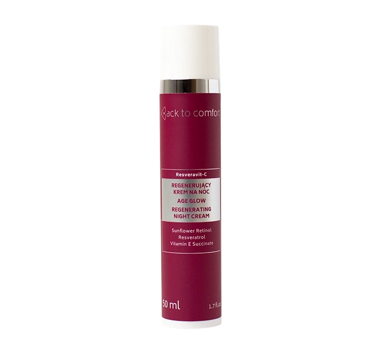 Регенерирующий ночной крем Back To Comfort Resveravit-C Age Glow имеет легкую консистенцию, которая прекрасно распределяется по лицу и быстро наряжается. Красивый аромат делает нанесение более приятным, а удобный флакон с дозатором облегчает использование средства.