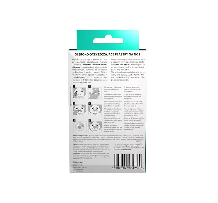 Специально разработанная формула пластырей для носа сужает поры, удаляет черные точки и загрязнения, а также регулирует выделение кожного сала.