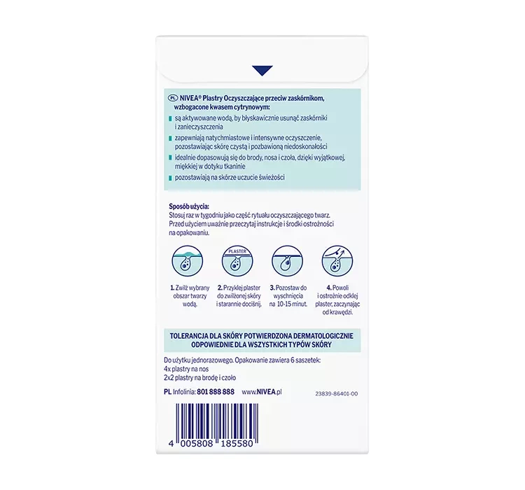 Очищающие пластыри Nivea Skin Refining идеально подходят для всех типов кожи, особенно рекомендованы для кожи, которая борется с недостатками и подвержена их образованию. Богатая формула обогащена лимонной кислотой, которая мгновенно устраняет загрязнения, черные точки и излишки кожного сала, оставляя кожу чистой, свежей и наполненной комфортом. Патчи изготовлены из мягкой ткани, которая не раздражает и легко подстраивается под форму носа, подбородка и лба. С ними Вы быстро избавитесь от каких-либо недостатков на сложных и требовательных участках лица, благодаря чему Вы сможете ежедневно наслаждаться красивой здоровой кожей.