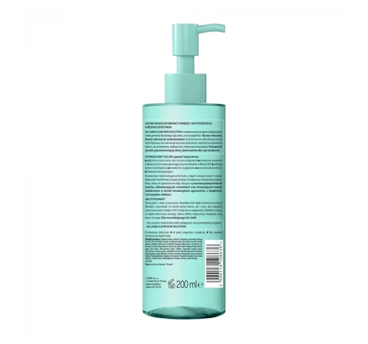 AA LAAB Clear Skin Solution гидрофильное нормализующее и успокаивающее масло для снятия макияжа 200 мл